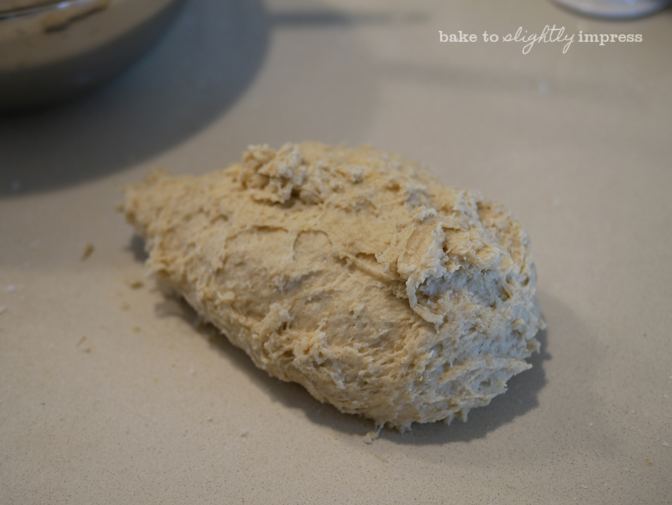 2. If mixing by hand. Pop everything into a bowl, use a dough scraper and just use your right hand to mix the ingredients up while turning the bowl steadily with your left hand. It takes some elbow grease and it is very messy. But it does work with patience! The book says mix in the butter last, but I find if you rub the butter into the flour in the beginning, it works just as well. But mostly because I dislike kneading butter into an already well kneaded dough.