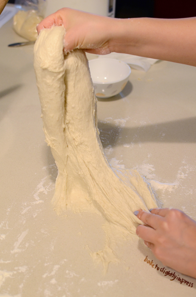 3. Don’t flour too much. A bit of flour always help with handling the dough, but too much would change the recipe and your bread might not turn out the way it should. And trust me, you would be tempted to add more flour when you first touch the dough. The key is the more you work it, the less sticky it is going to be. It WILL come together eventually. It does seem like it doesn’t happen fast enough tho, I’d agree.