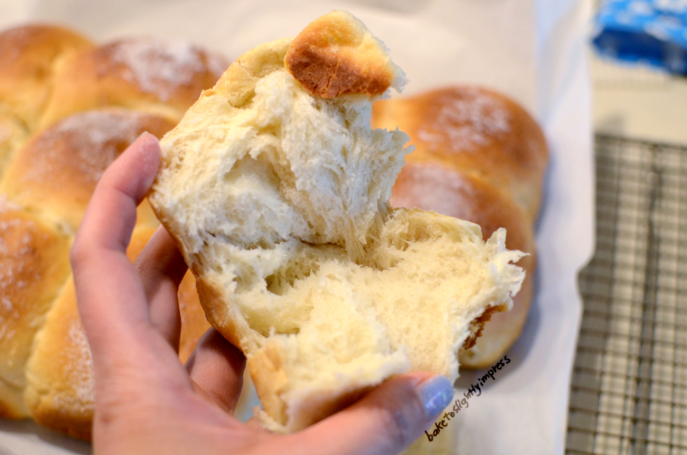 You will be rewarded by these fluffy pillow of love when you are finished though. It is thoroughly worth it. When you make them, make sure you try to get a photo of you kneading that sticky dough to show people as you feed them this bread. Even the Asian bakery frequent customers would agree that it is impressive that you managed to make a dough out of that mess. But hopefully not enough for them to request you make them some. Because that would be bad. And your shoulder might hurt after that…. or, maybe you get a bread machine afterall.