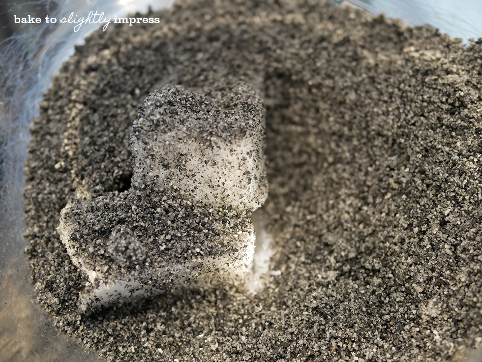 2. Put sesame seeds and sugar into a food processor (or you can mortar and pestle it). The sugar help with keeping the sesame dryer than when you grind just the seeds alone but still keep an eye on it. Grind it to as fine as you like, I like the sesame to be a bit smoother but peanut to be chunkier. If you do happen to grind it into a paste, you can probably cut down on the lard/butter.