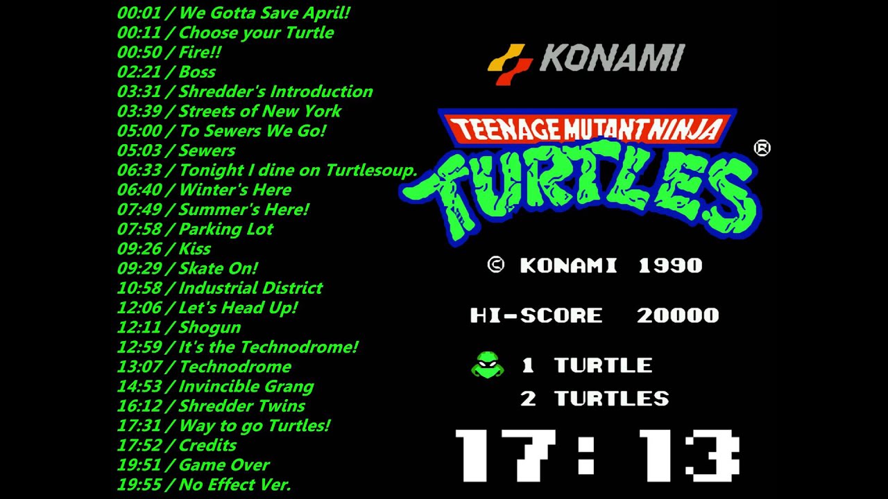 Triangleの修正。00:01 / We Gotta Save April!00:11 / Choose your Turtle00:50 / Fire!!02:21 / Boss03:31 / Shredder’s Introduction03:39 / Streets of New York05:00 /…