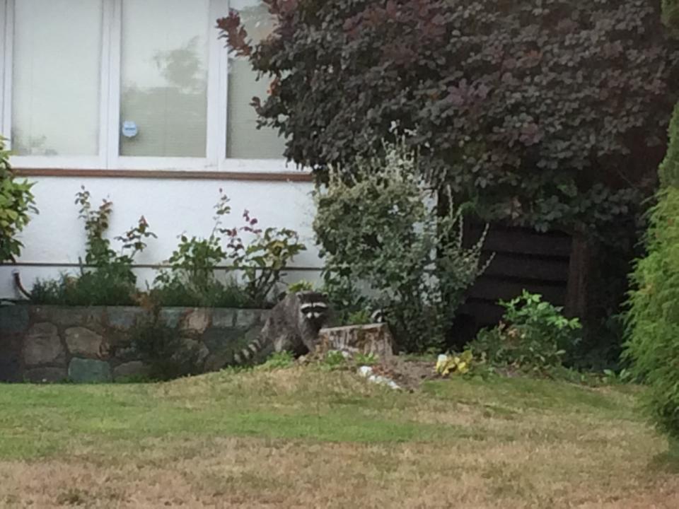 Two large raccoons just hanging around. 😮