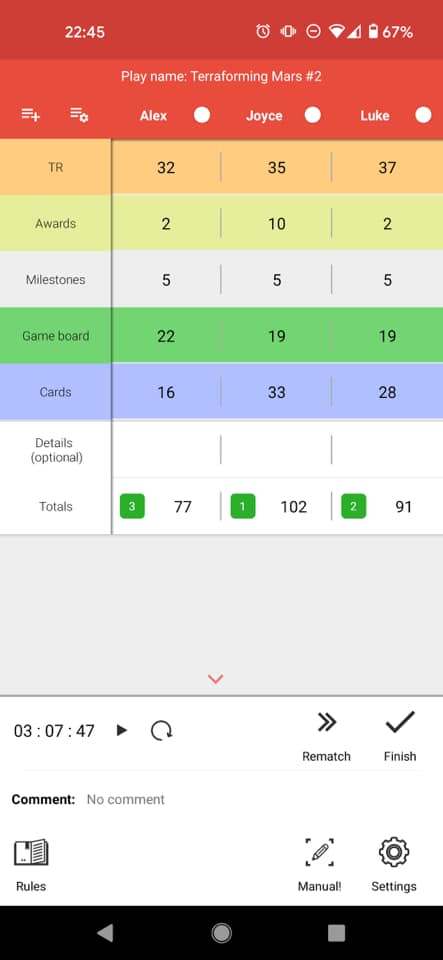 We now have Terraforming Mars night on wednesday(could change to something else later but it’s TM for now). And I won my first game EVER!! Like I am a bit rubbish at it but also sometimes unlucky with cards. I still like the play and losing doesn’t bother me, still winning sure feels good! We played with the prelude expansion we got recently and it actually give you a boost in the beginning of the game and can really help!