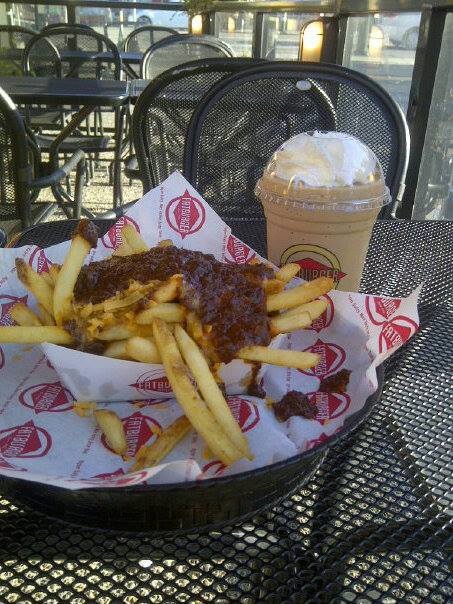 Hanging out with bro with food. I love food.